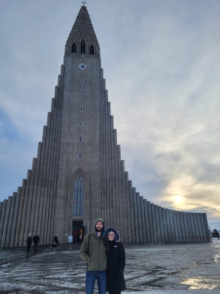 Alex and Amy in front of Hallgrímskirkja