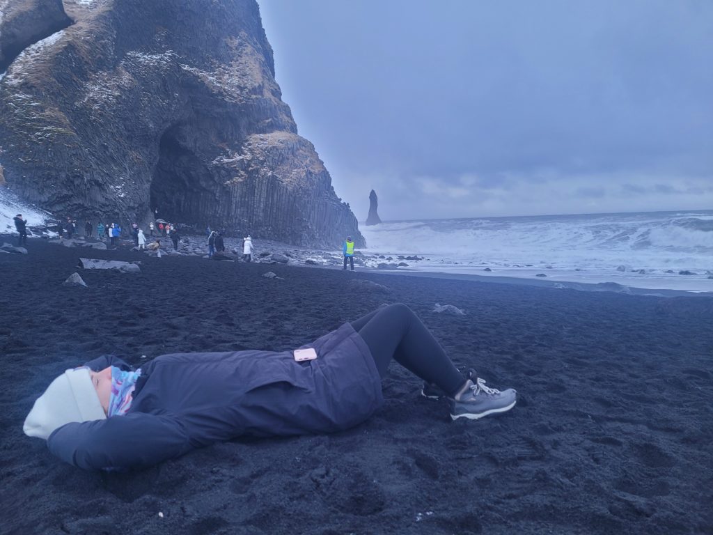 Amy relaxing at Black Sand Beach