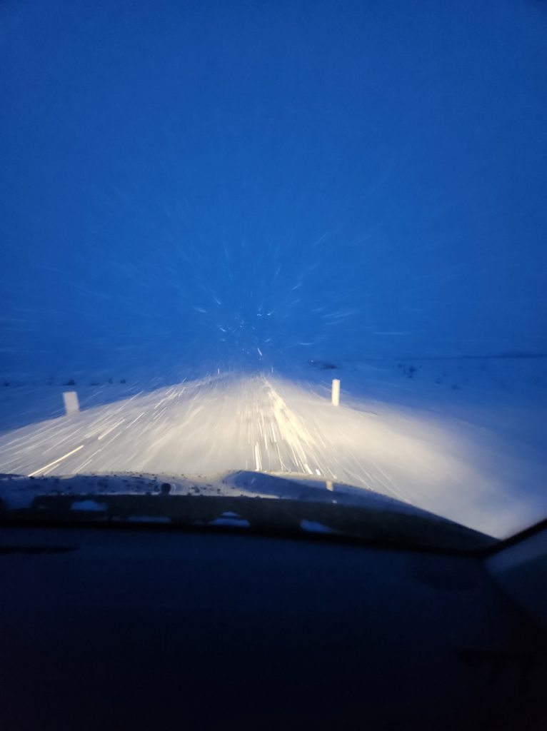 The flight landed around 4:30am GMT. Before leaving the airport, we picked up two 10GB SIM cards and some tax free alcohol, then picked up our rental car next door from zerocar.is. Our ride was a 4×4 Dacia Duster and it took approximately 11 seconds for me to admit Amy was right: without 4WD, we were not going anywhere in this country. At this point it was already freezing and the skies were spitting some icy rain. Everything in sight was covered with several inches of snow. I had to scrape off the windshield and relearn how to drive a stick shift while navigating foreign roads in the darkness. We soon learned that in Iceland, the roads are not salted and about 95% of the time we were driving atop a sheet of ice or through thick slush.